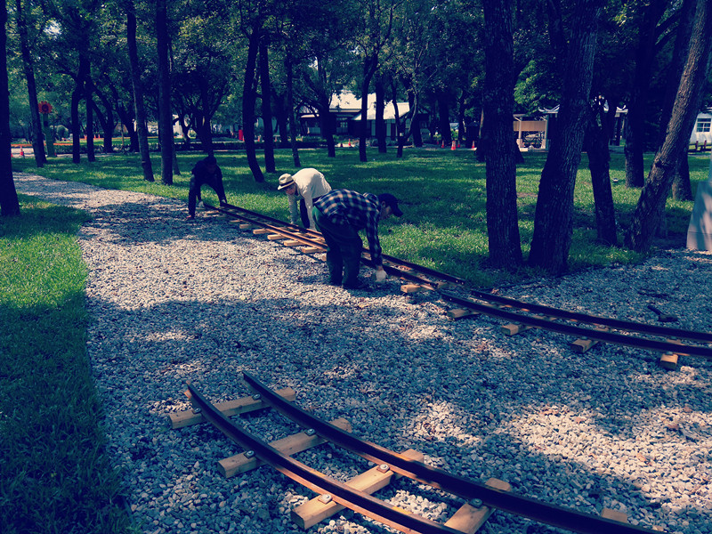 這個是非洲的**公園正在安裝我們公司生產的軌道小火車,可以清楚的看到有三個人還正在安裝調試這個小火車的軌道