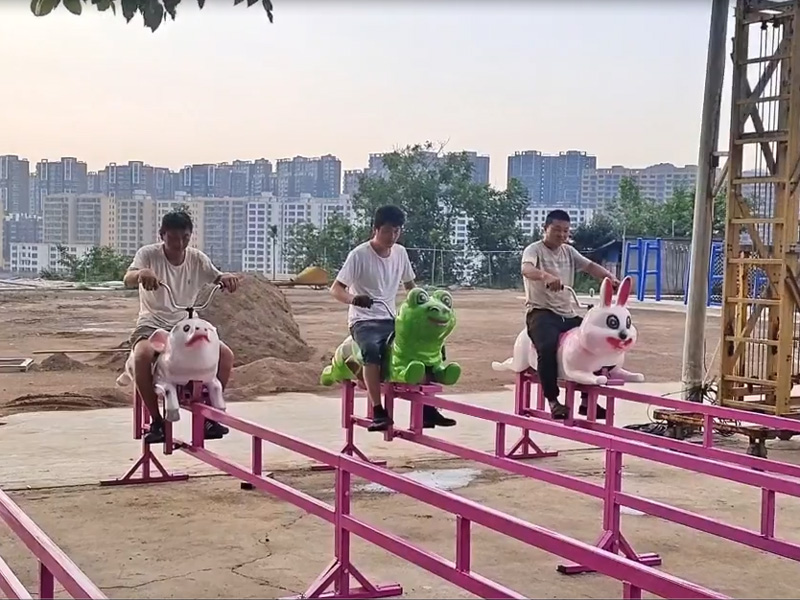乘客騎坐在形態各異的小豬座艙上,用手中的搖桿帶動輪子在軌道上前進或后退,想要跑得快還是需要一定的技巧,朋友之間可以來一場歡樂的友誼賽,很是有趣。
