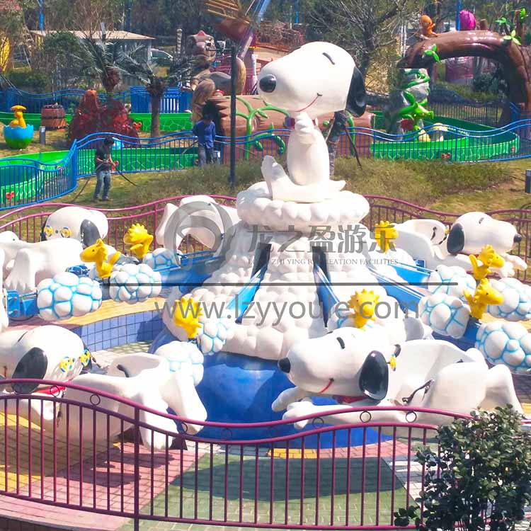 現(xiàn)在的游樂市場中,據(jù)客戶反映情況來分析,新型游樂設(shè)備在市場行情中能夠受到游客廣泛喜愛。就單拿飛天史努比來講,飛天史努比作為一款新型的自控飛機(jī)上下轉(zhuǎn)動飛行的兒童游樂設(shè)備,首先它具有足夠大的體積能夠在游樂場中眾多設(shè)備中以高度和體積突出成為坐標(biāo)。其次飛天史努比并不像其他游樂設(shè)備一樣五彩斑斕,飛天史努比機(jī)身用天空藍(lán)做底色在其底色中添加白云造型進(jìn)行點(diǎn)綴,飛天史努比的座椅完全是高還原度的史努比卡通形象加上承重臂上鵝黃色呆萌小恐龍,使設(shè)備更具生動。近年來空氣指標(biāo)一直都不太理想,所人們對藍(lán)天白云一直都是珍視期盼的,飛天史努比簡單純粹的色調(diào)組合可以說從另一層面來捕獵人們的游玩心理。